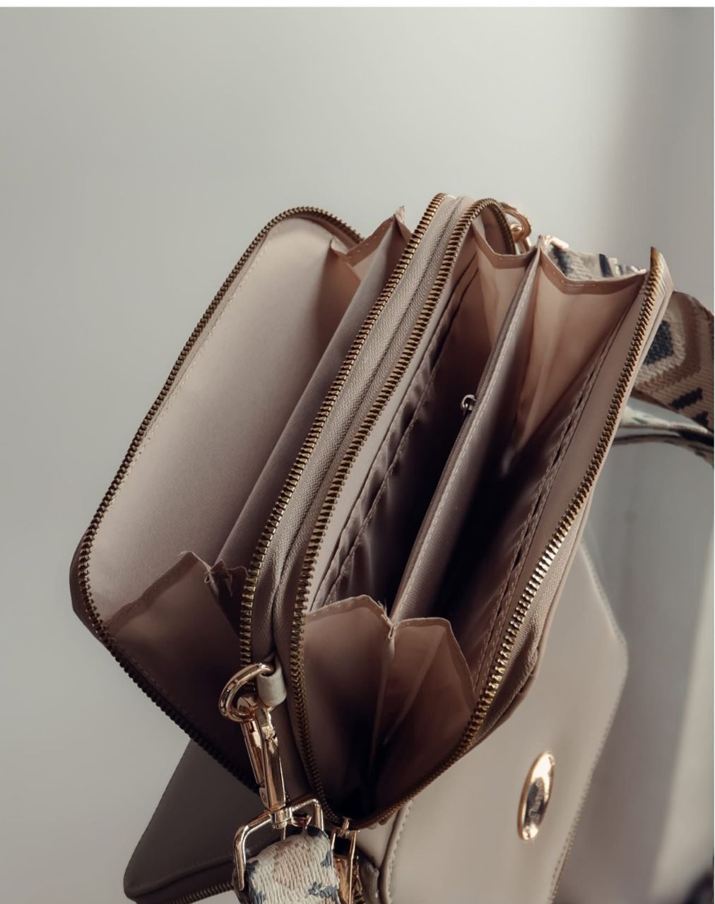 dos compartimientos bolsillo interno con cierre herrajería oro Rosa